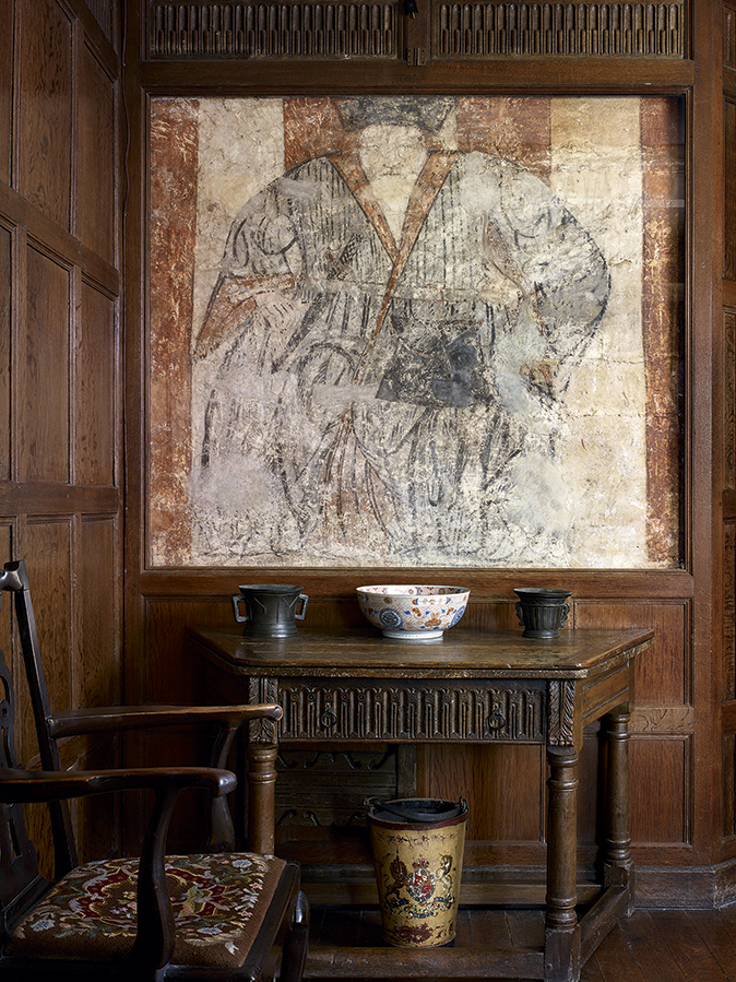 In 1962, Charles Floyd, son-in-law of the Edwardian restorer of Great Chalfield, went in search of them, but could only locate one, which is now in the house. Astonishingly, it is not of timber, but plaster. As recently pointed out by the architectural historian Claire Gapper (www.clairegapper.info), this is the earliest-known example of English decorative plasterwork. It also clearly illustrates the development of this artform, associated with Tudor and Jacobean architecture, from carving in timber.