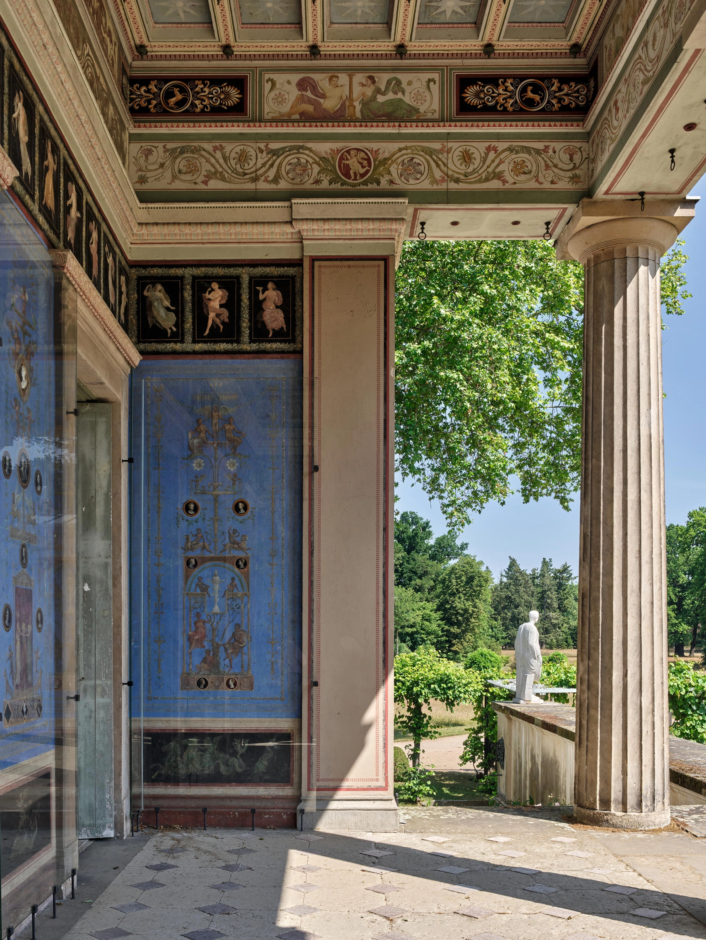 First established in 1745 by Frederick the Great, the Park of Sanssouci or ‘without-care’ at Potsdam was developed as the summer retreat of the Hohenzollern Kings of Prussia — and later German Emperors — from their nearby capital of Berlin. Among the numerous palaces, follies and garden buildings that came to ornament this expansive landscape is a small, but important neo-Classical villa called Schloss Charlottenhof.