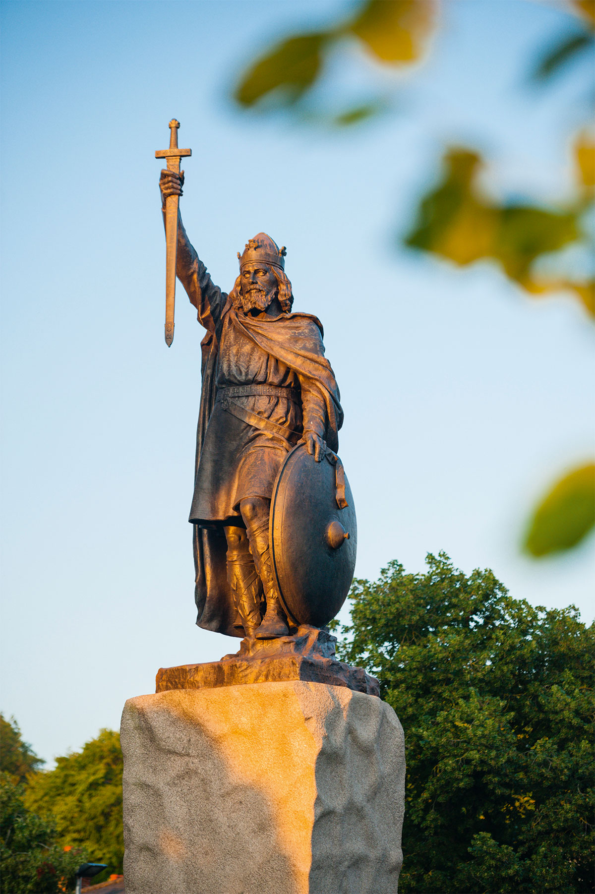 Royal greeting: city visitors are met by Thorneycroft’s statue of a warlike Alfred the Great.