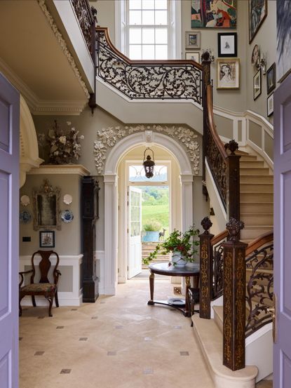 A sweeping double staircase, stone floors and oak-panelled walls meet swimming pool and games room in this West Country mansion