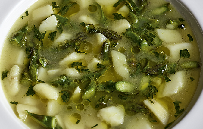 The delicate flavours in this asparagus and potato spring broth will delight your guests, vegetarians and meat-eaters alike.
