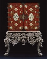Carlton Hobbs is renowned for its stands, which tke the form of the kind of room which suits my own taste perfectly, last year's being an opulent library. This time, a George III breakfront mahogany bookcase with delicate carved foliage by royal cabinetmakers Vile and Cobb draws visitors in, and a red-and-white lacquered cabinet of about 1690 on a silver-gilt stand keeps them there to admire its rich colours and astonishing detail. At Godson & Coles, a scarlet japanned bureau cabinet, of about 1720, by John Belchier is worth a look, too, for its unusual gilded cresting.