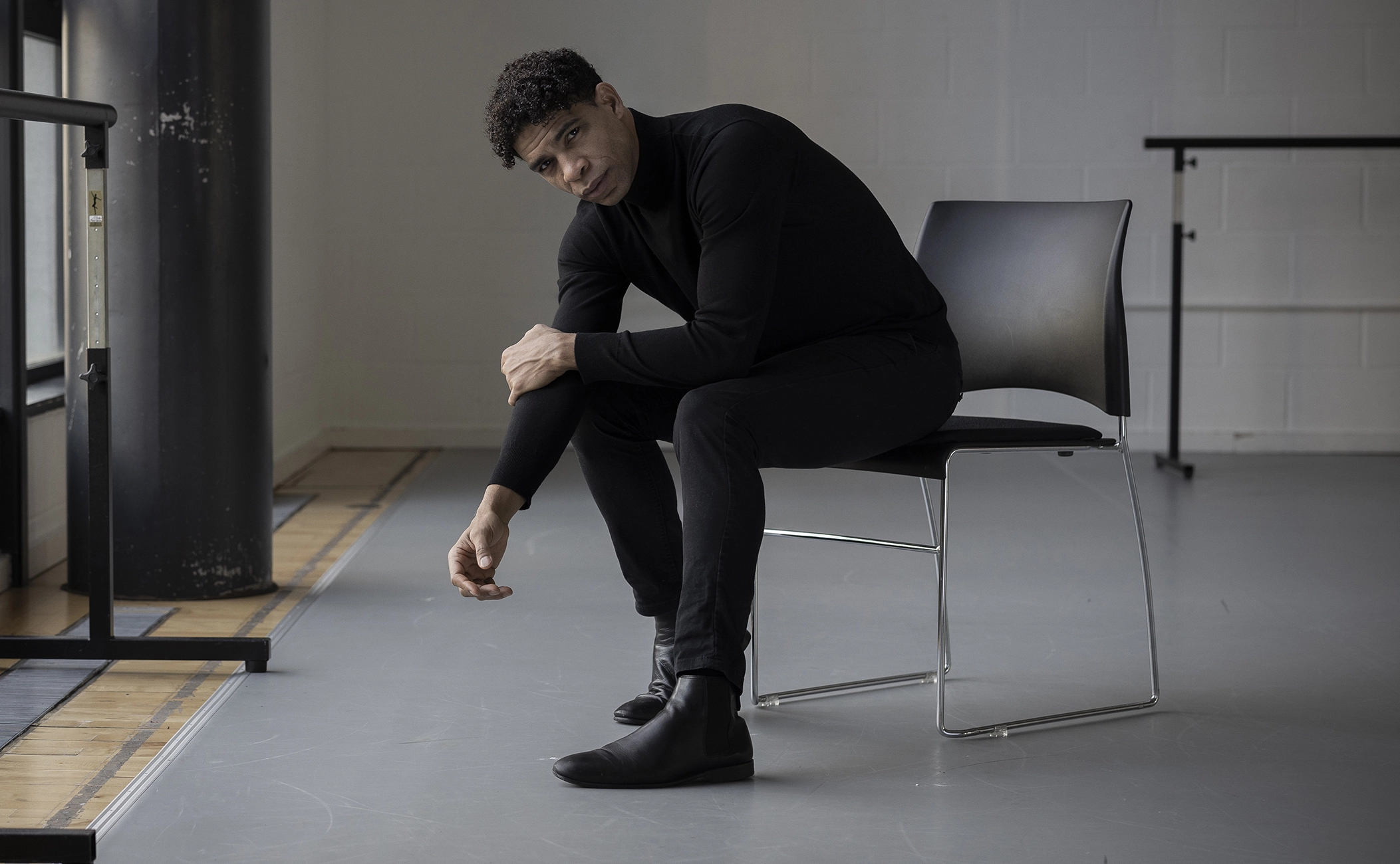 Although Carlos Acosta is leaning against the ballet barre at the front of the room in a pose that one might mistake for being casual, he is lithe and laser-focused as his eyes trace the young dancer’s movements across the floor. His head inclines slightly with each change of direction, perhaps in yearning. Dressed all in black, the director of the Birmingham Royal Ballet does not look his 52 years of age; in fact, most 52-year-olds would, I imagine, kill to look as good as he does. He is a sexy guy.