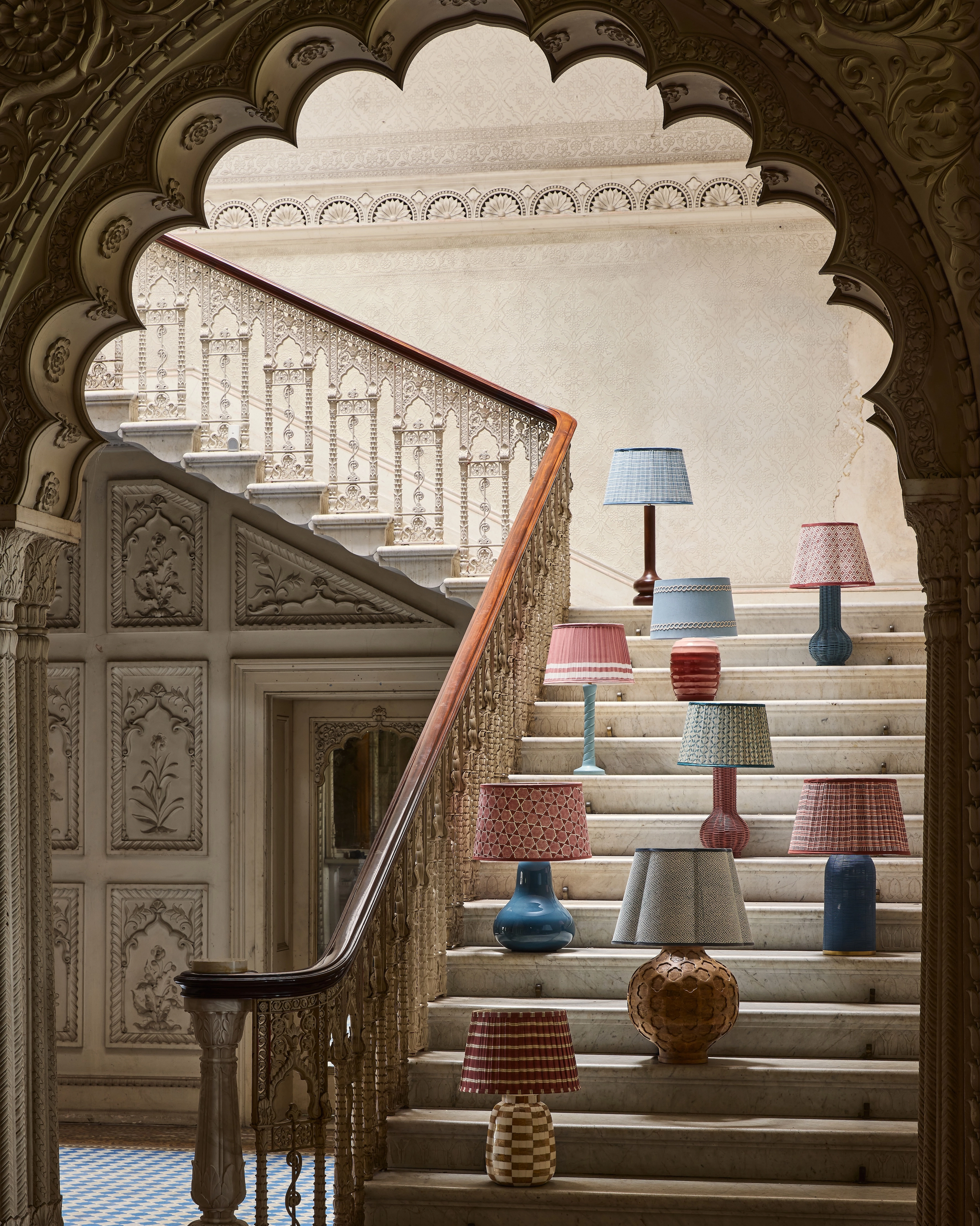 Birdie Fortescue’s pop-up stand showcases the Vasanti lighting collection of sculptural lamp bases, from £155 each, and patterned shades, from £85 each.