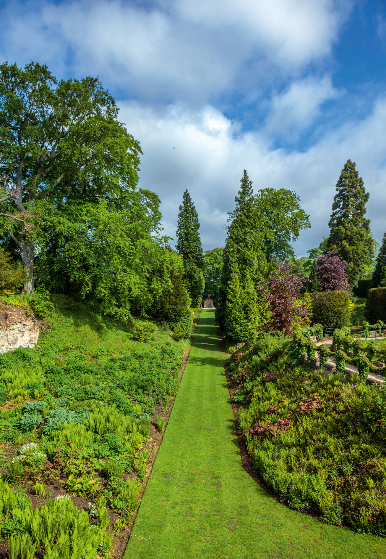 Under Mr Hale’s guidance, the 1,000 individual examples of topiary are increasingly clipped by hand, which lends a human touch to the wide topiary beds that border three sides of this garden. The fourth side would once have matched the others, but is currently left to grass under a stand of Scots pine, as orchids and other wildflowers have naturalised themselves on the magnesian limestone ridge on which the estate stands.