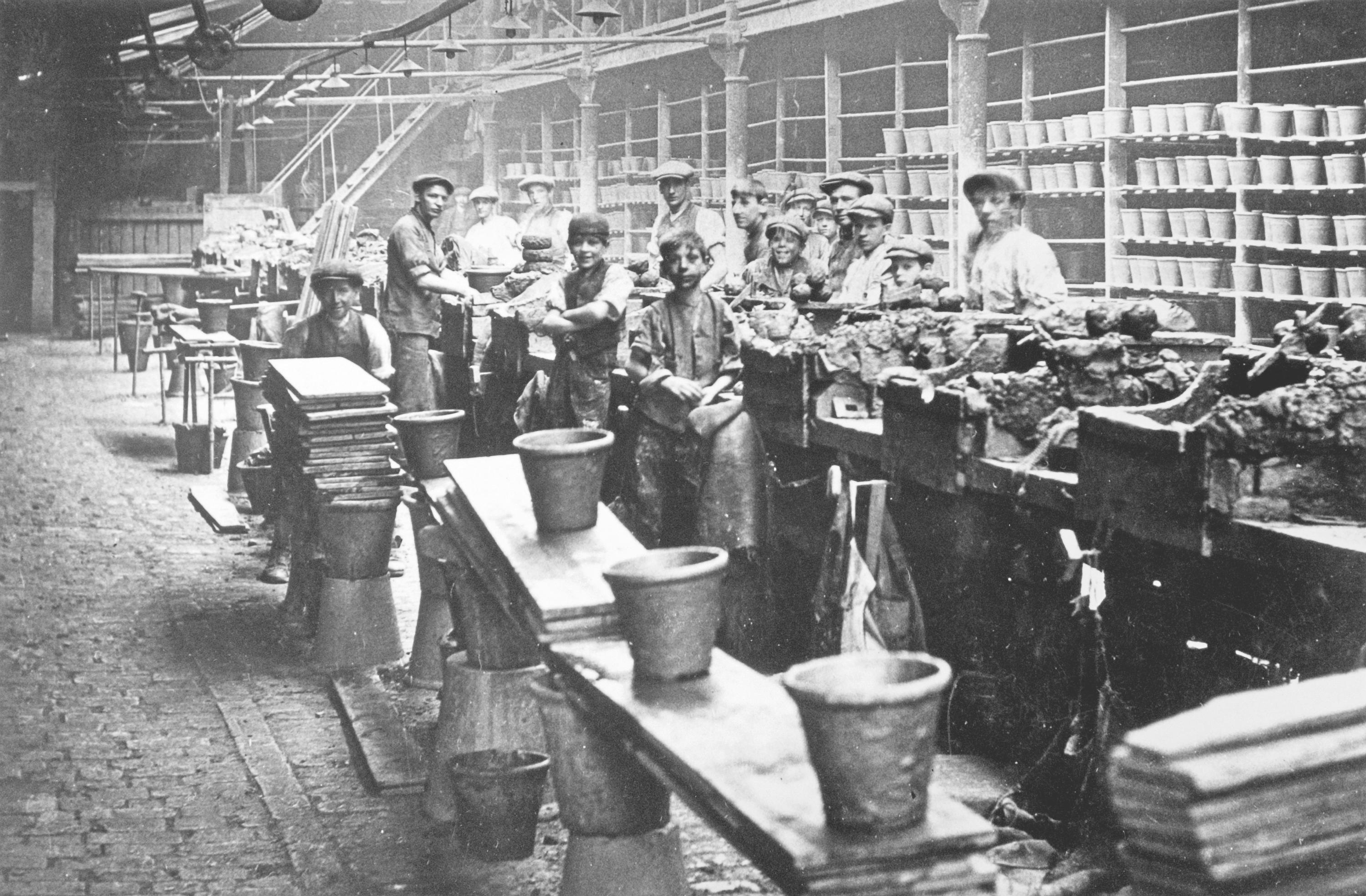 A rare photograph of pot boys at Richard Sankey & Son in Bulwell, Nottingham, once the largest supplier of flowerpots in the world.