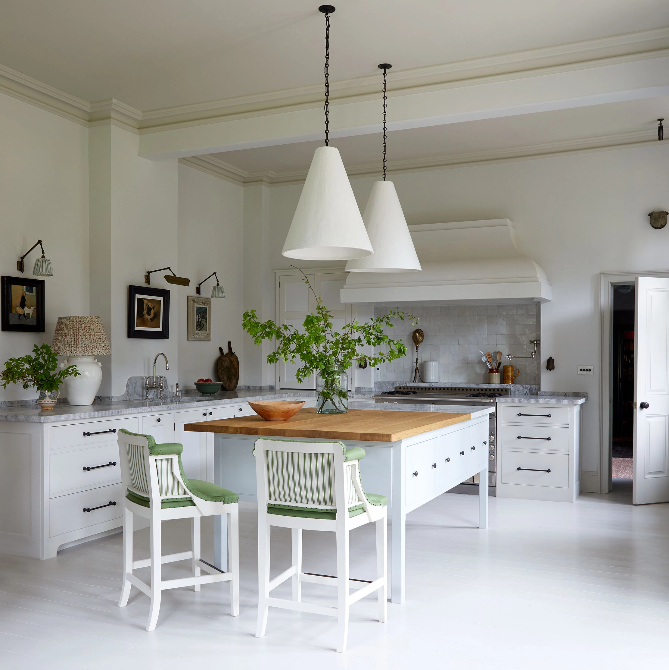 There are no wall-hung cupboards, as there is plenty of additional storage in an adjoining butler’s pantry, allowing the couple to have discreet help when required.