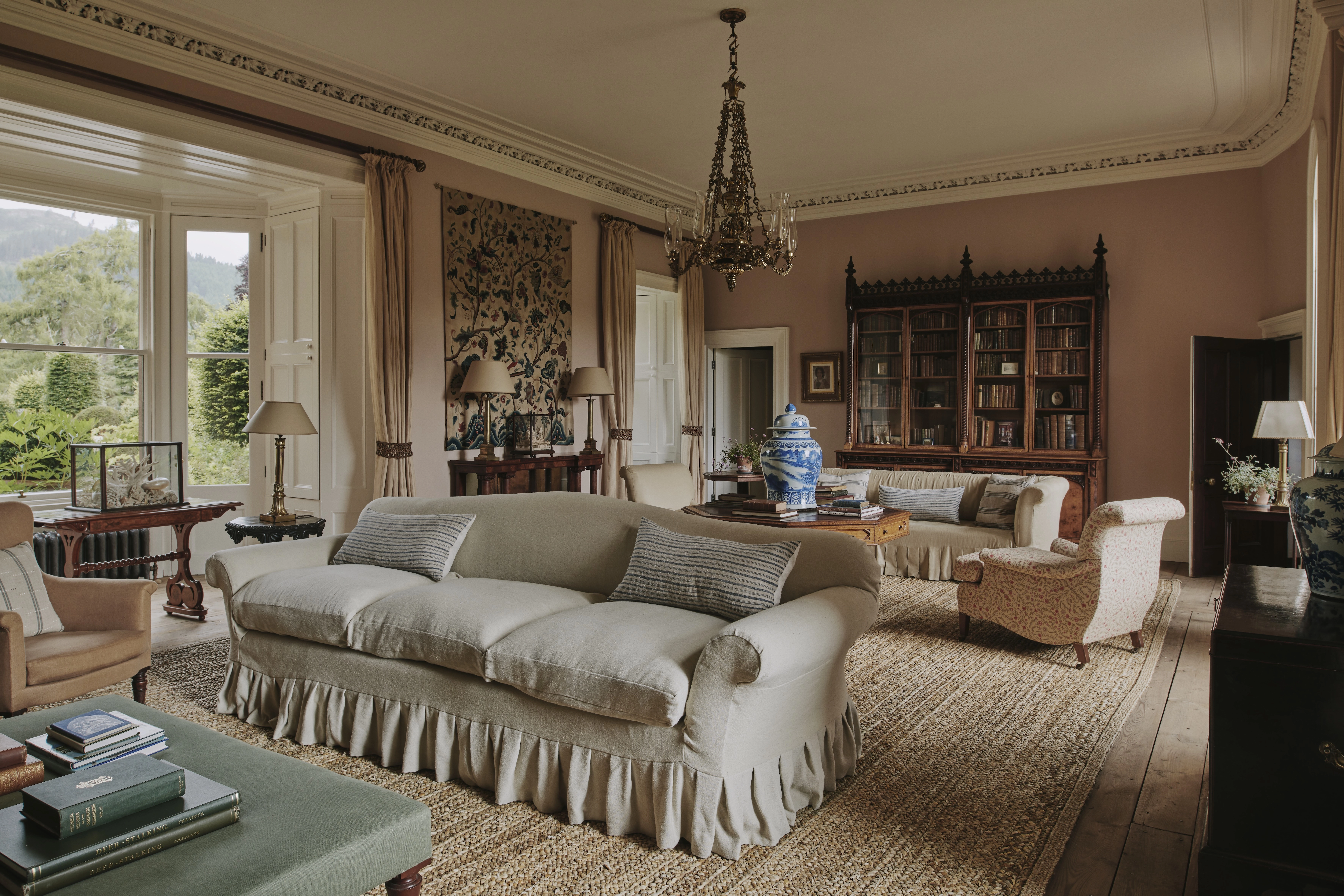 A mix of sympathetic colours and elegant furniture has brought new life to this impressive space at Aldourie Castle.