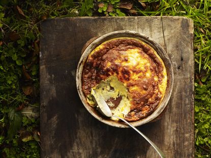 Gill Meller's recipe for a seasonal new potato omelette, with smoked garlic, onions and Cheddar cheese