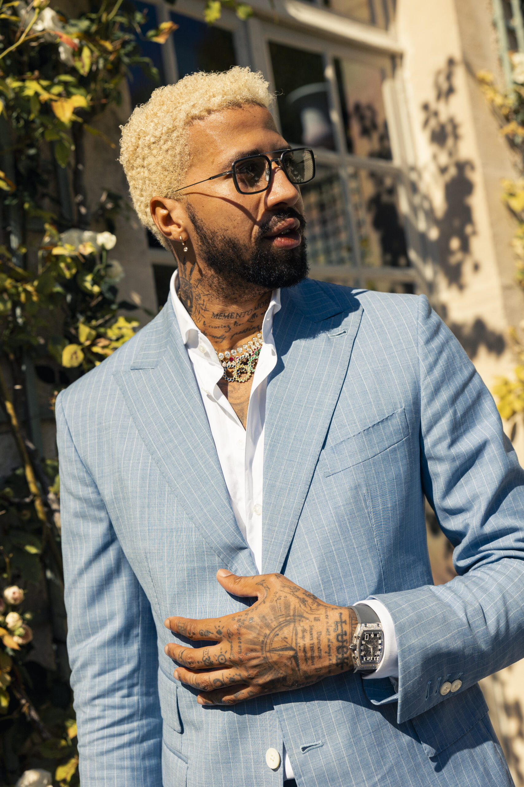 American fencer Miles Chamley-Watson wearing a diamond set RM 67-01.