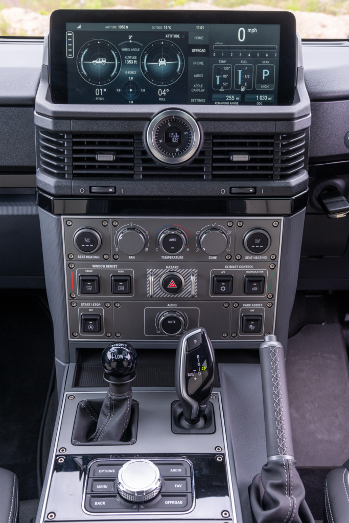 Nostalgia extends beyond just the look of a thing, but also how it feels and what it represents. Perhaps the first impression you take away from the Grenadier (after ‘gosh that does look a lot like a Defender’) is how analog everything is. Doors slam with a satisfying clunk. Buttons and levers are big and rugged. Yes, there is a screen that tells you where to go and how to listen to your favourite songs while driving, but everything else is a switch or a button on a control panel that looks like it was taken out of the cockpit of a 747. It is all immensely tactile and a very obvious foil to the endless march of touchscreens and sub menus. Maybe people have a point. Maybe things were better back Then. They were certainly simpler.