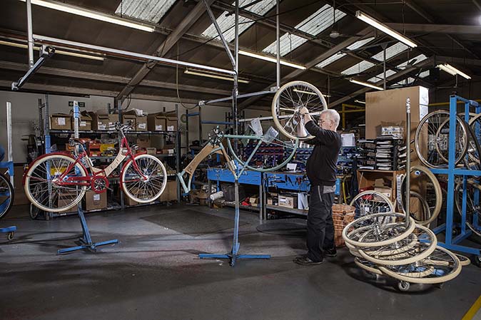 Our main picture at the top shows assembler Ed Woolley adjusting the gear of a bicycle, with one of Pashley’s bestselling Britannia range in the background.