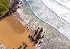 The beach — which is also known as Mill Bay — sits about half an hour’s walk south of Land’s End, though the two couldn't be more different.