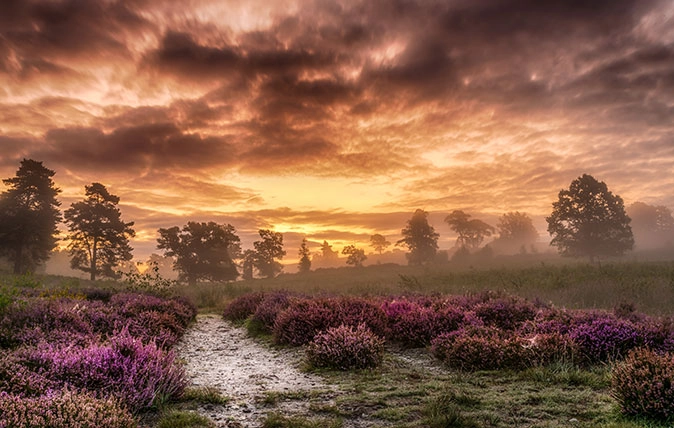 A fiery sunrise invites you out onto the heath past bare earth and purple cobwebbed heather. This is a space where you can grow spiritually.