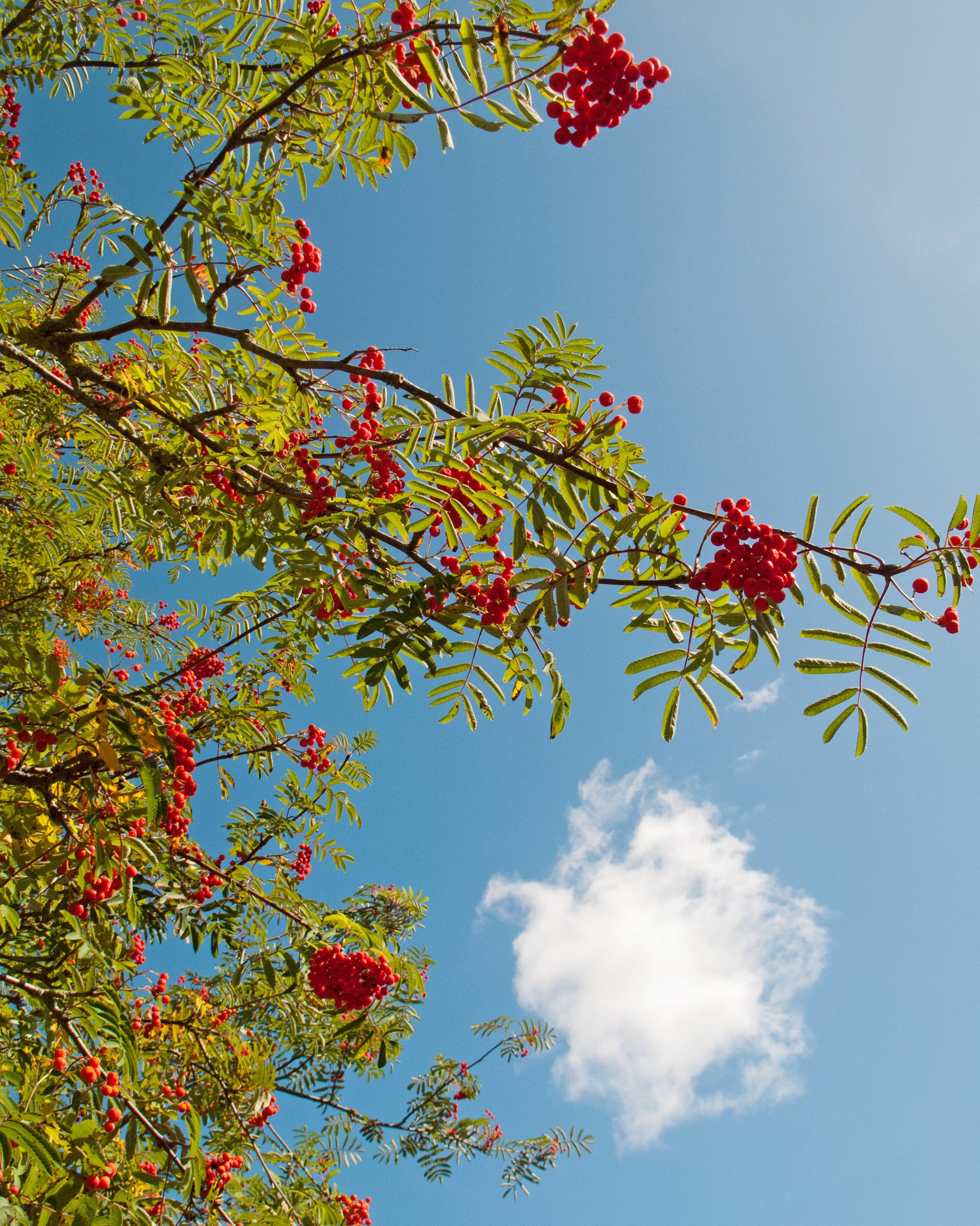 People certainly believed that in medieval Ireland, where the trees were planted outside houses to protect against evil spirits; their flair for repelling the supernatural is also the reason rowans were regularly grown in or near churchyards, particularly in Wales. In Scotland, rowans thrive in the wilds of the Highlands, often at altitudes too great for other British trees. Emerging from clefts in rocky hillsides, they acquired the name ‘mountain ash’ on account of their habitat and the similarity of leaf structure between the two trees, although the ash is, in fact, a different and unrelated species.