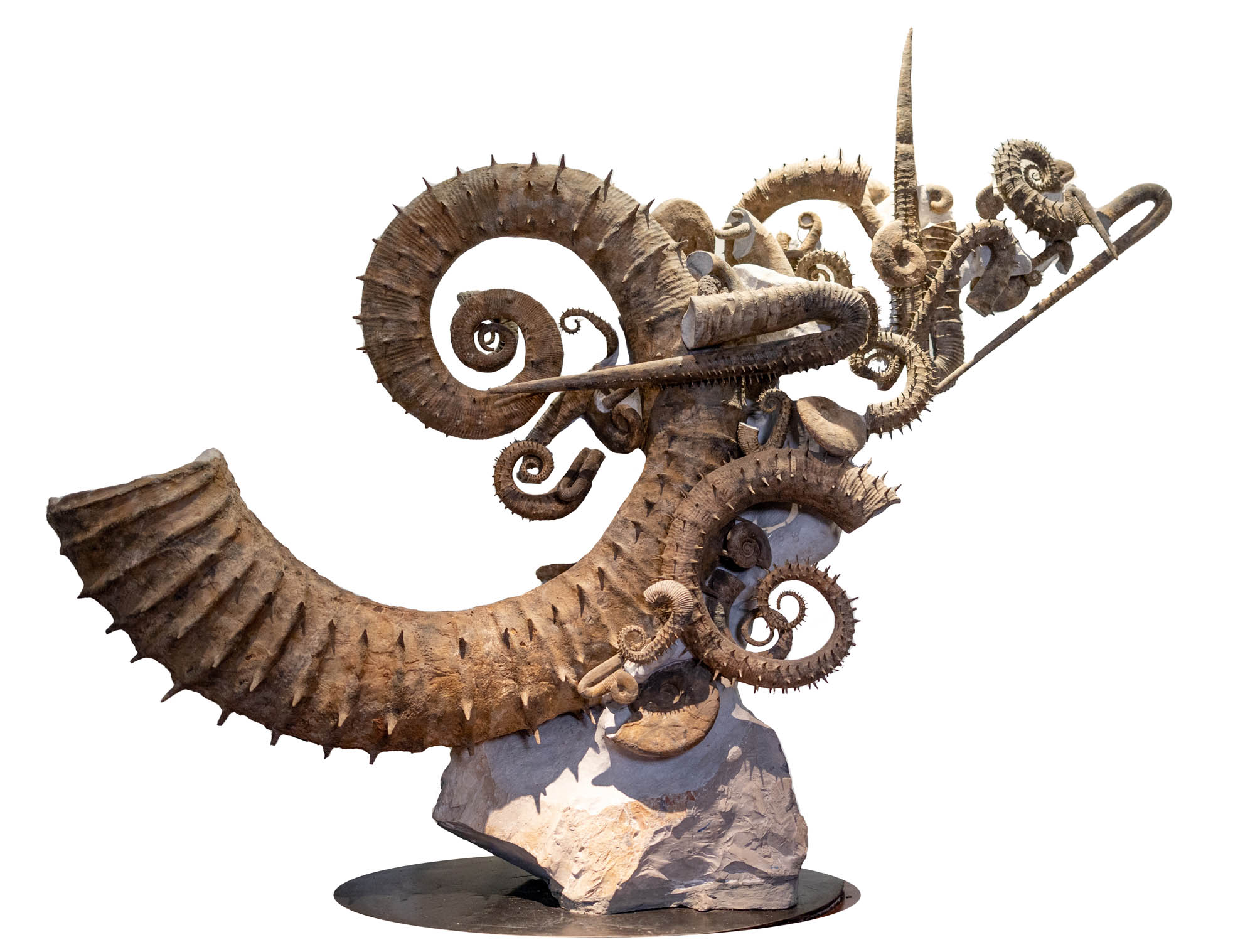 Bizarre, sinuous shapes twist and turn, intertwining in a mass that looks impossible to disentangle. It may look as if the woodwind players of an infernal orchestra abandoned their instruments as they left the stage, but these are the remains of some of the earth’s strangest creatures: heteromorph ammonites.
