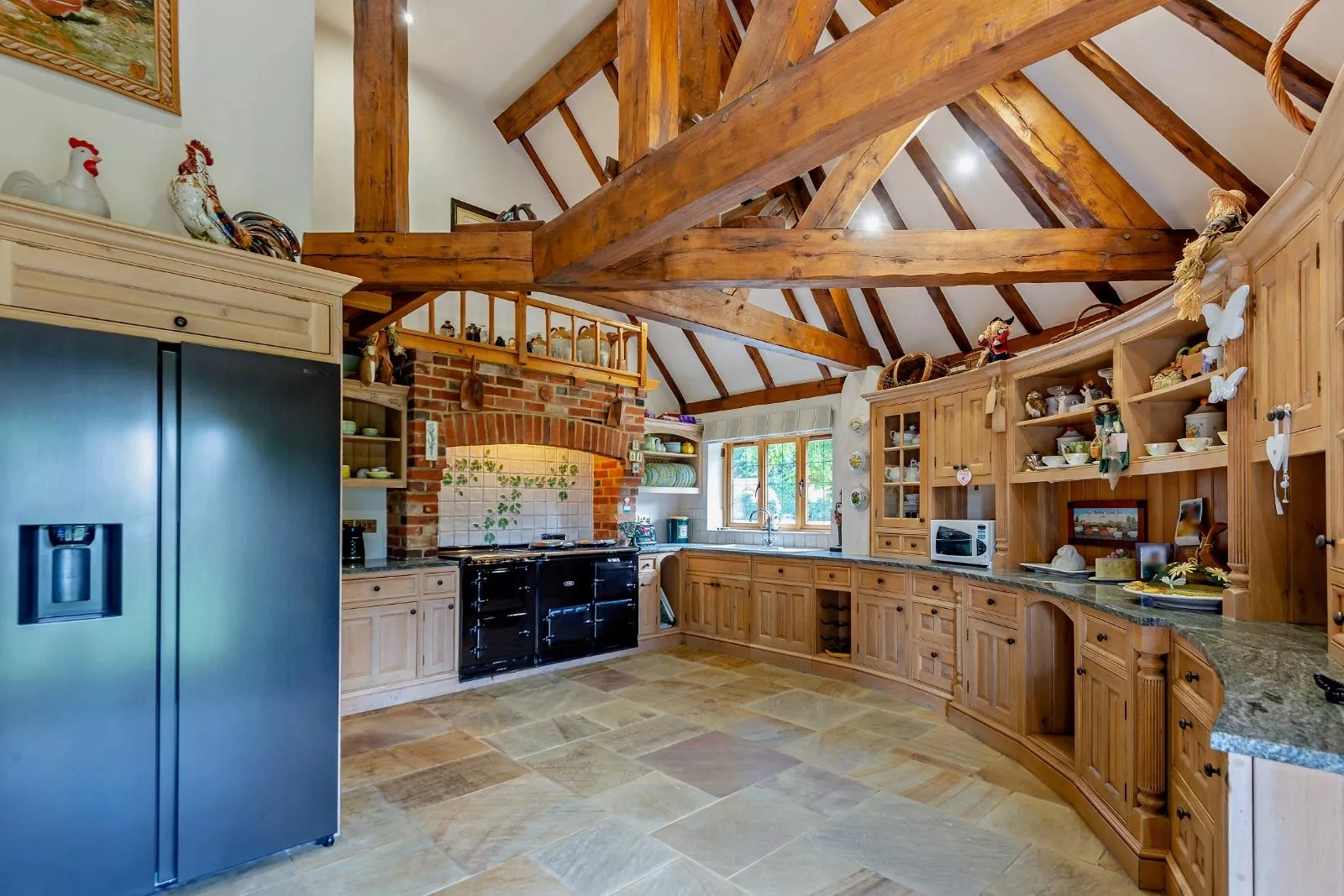 A country kitchen and a home cinema coexist happily in this charming four-bedroom house in Litchborough, with gated driveway and extensive grounds.