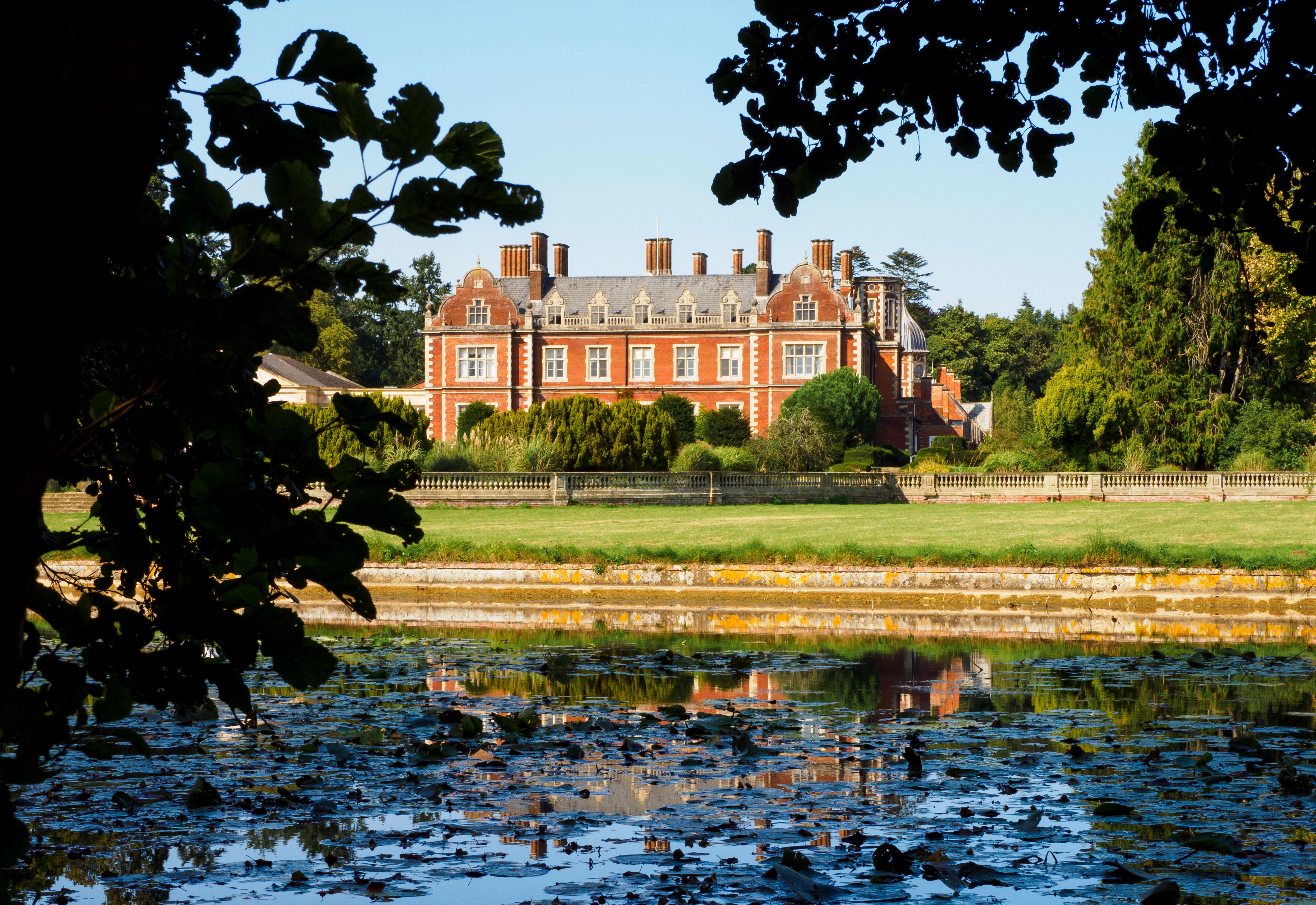 The influence of Jacobean Hatfield House is easy to see at Lynford Hall, with its contrast of red brick and white stone.