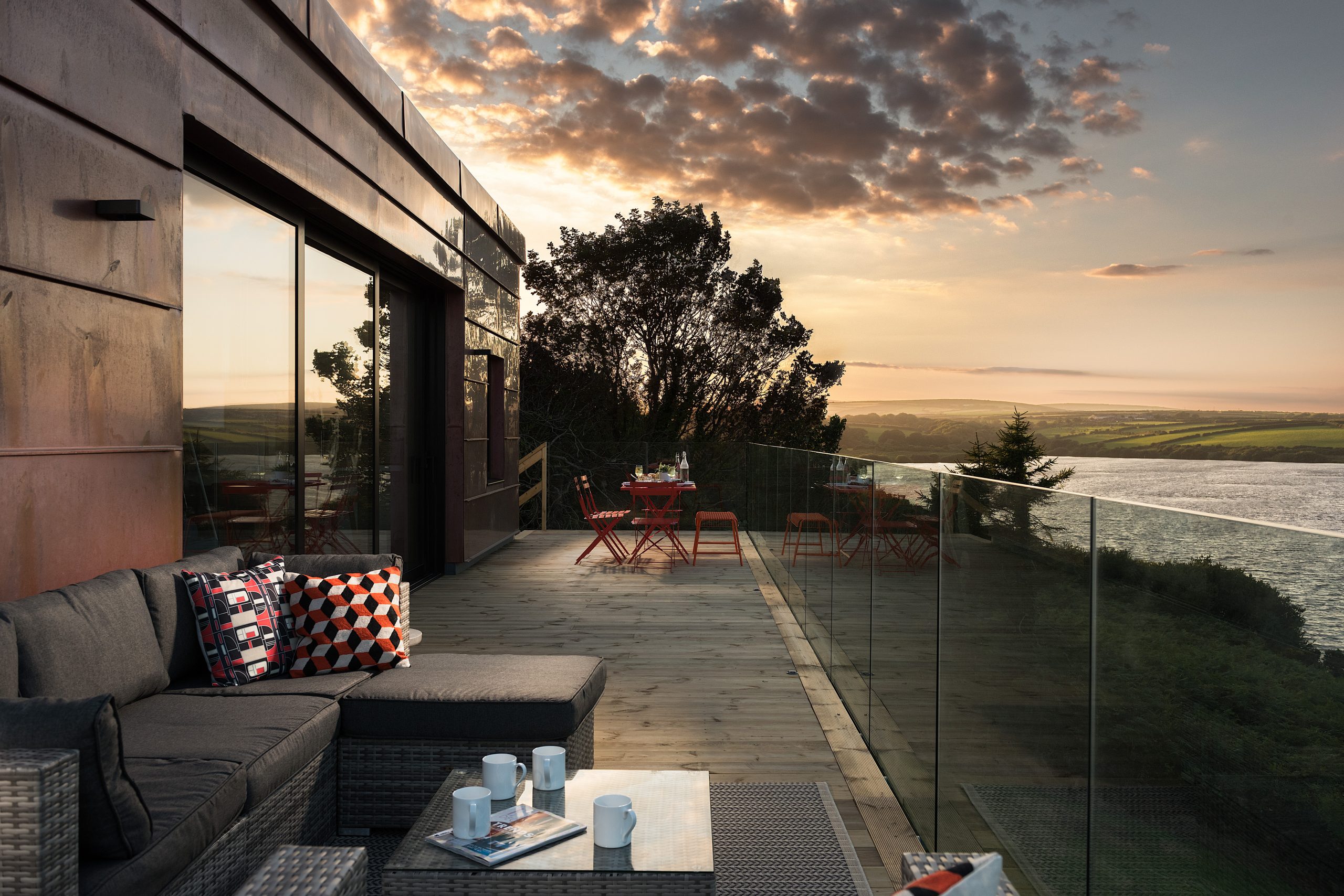 The striking copper-clad exteriors hide 1,173sq ft of space where virtually every inch makes the most of the magnificent panorama. So two of the three double bedrooms have their own sundeck and, upstairs, the open-plan living area opens onto a vast terrace that’s perfect to dine alfresco.