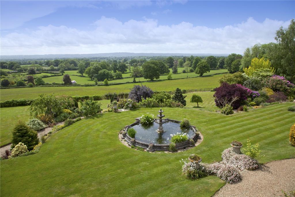 The house offers stylish accommodation on two floors including, in addition to the Great Hall and library, a large drawing room, a study, kitchen/breakfast room, butler’s pantry and garden room. Upstairs, all five bedrooms have either en suites or adjoining bath/shower rooms with lovely views over the gardens.