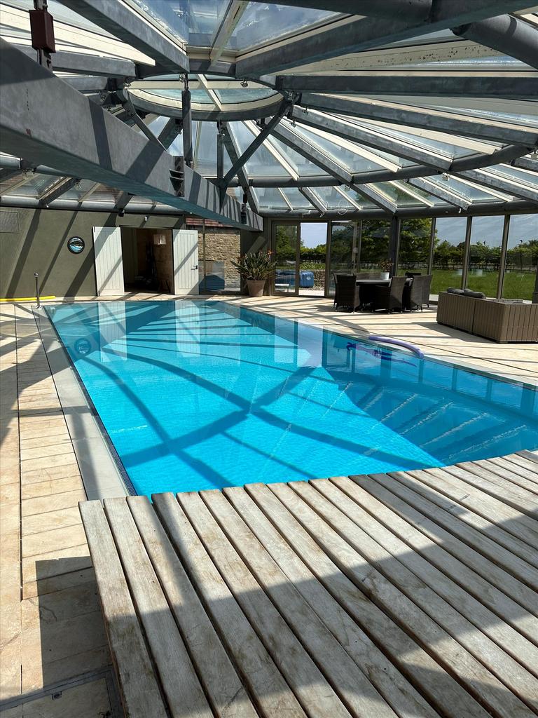Also within the grounds is an air-conditioned indoor swimming pool with changing rooms, showers, a gym area and doors to the garden with its far-reaching views.