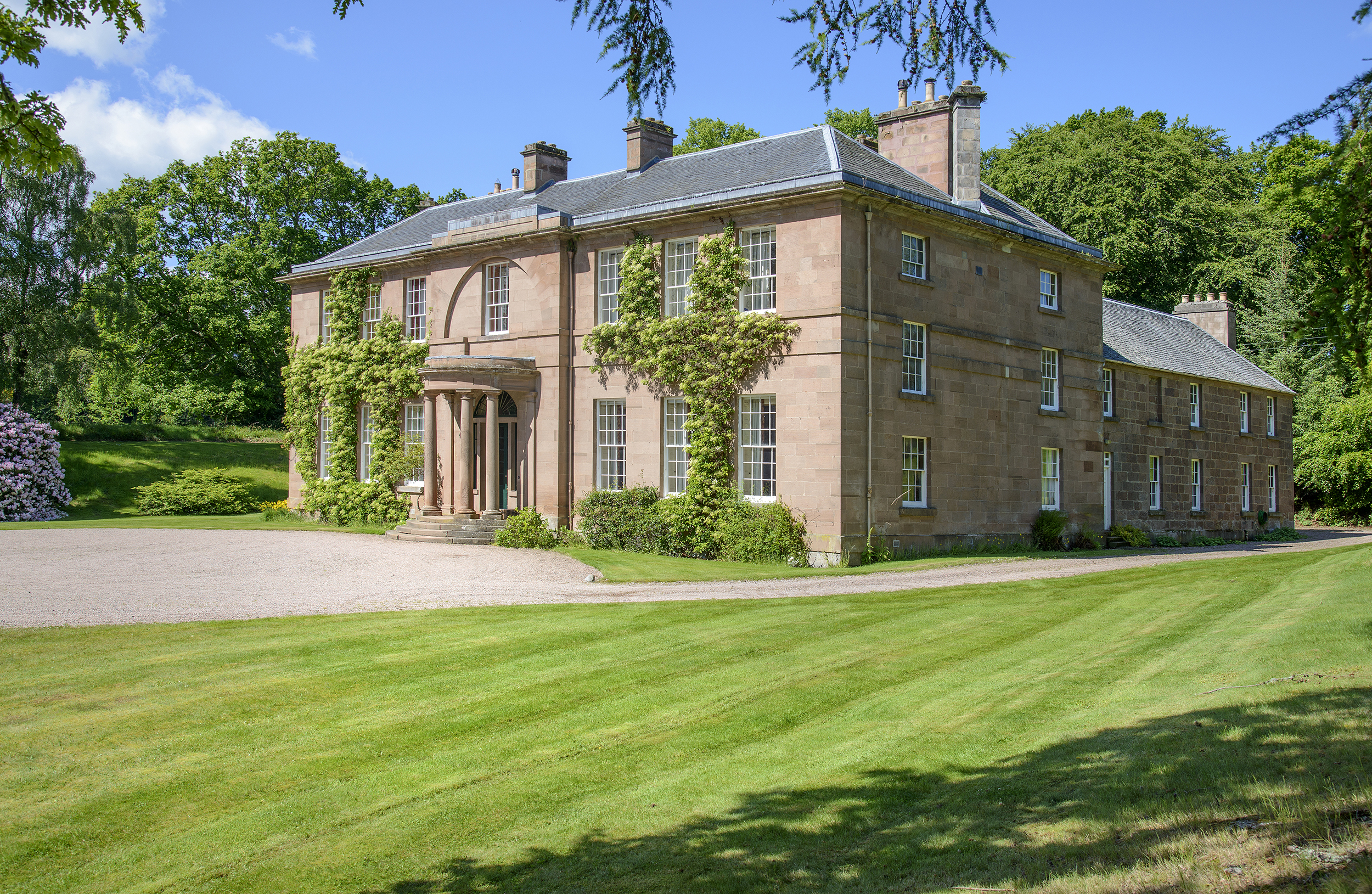 The present house, listed Category A, is currently let on a short-term tenancy and has three main reception rooms, eight principal bedrooms and four bathrooms, with two first-floor flats providing a further six bedrooms. It comes with a gate lodge, two estate cottages and two further cottages in need of refurbishment.
