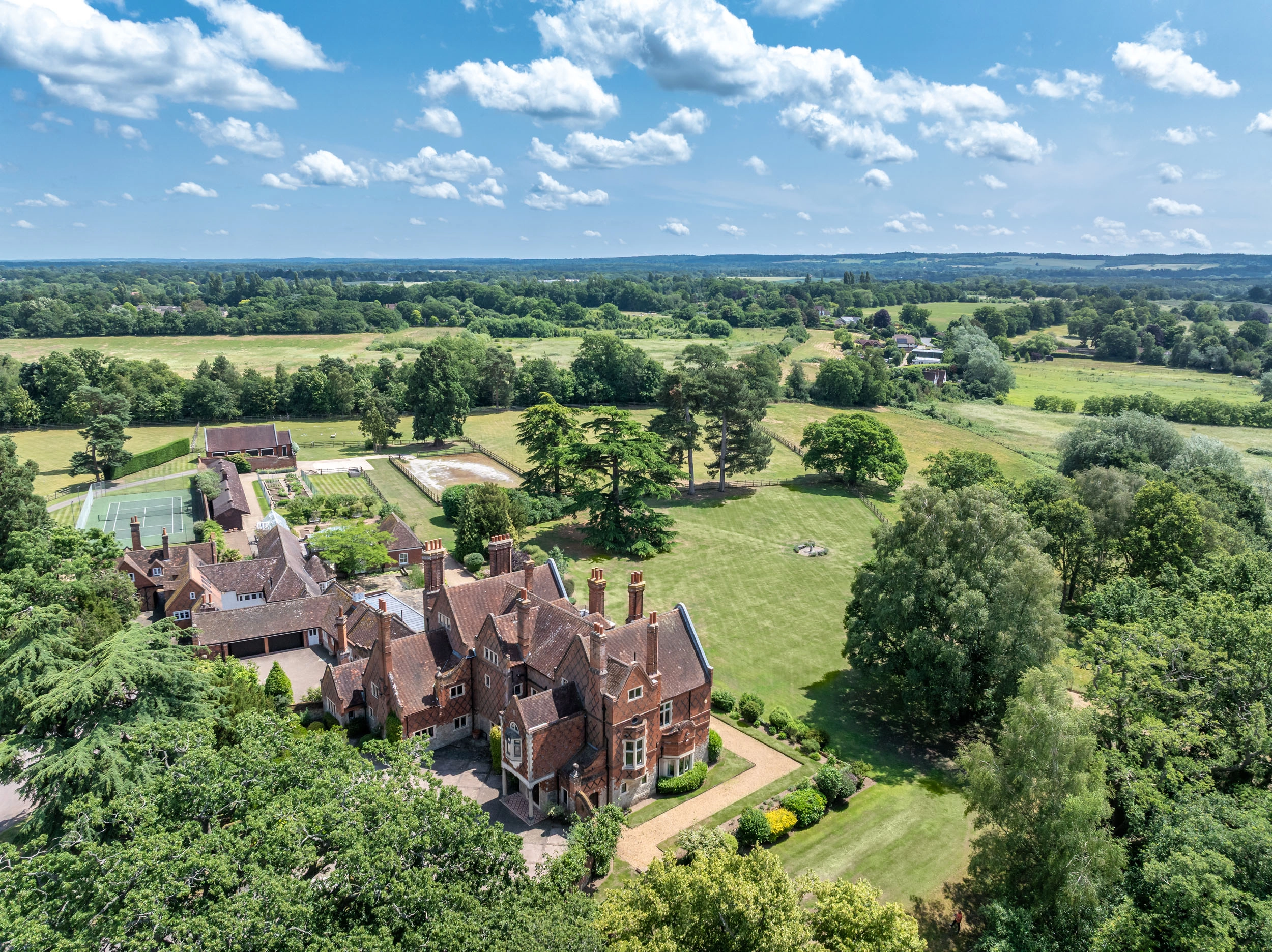 A commutable country estate that has it all: a lake, its own cricket pitch and a vast swathe of Surrey to call your own