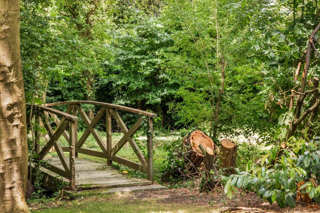 The garden is also large and charming, continuing the theme. In all about 1.25 acres, there are plenty of mature trees ensuring privacy, while the front door of the home is approached via a footbridge over a stream, which is just nice isn’t it.
