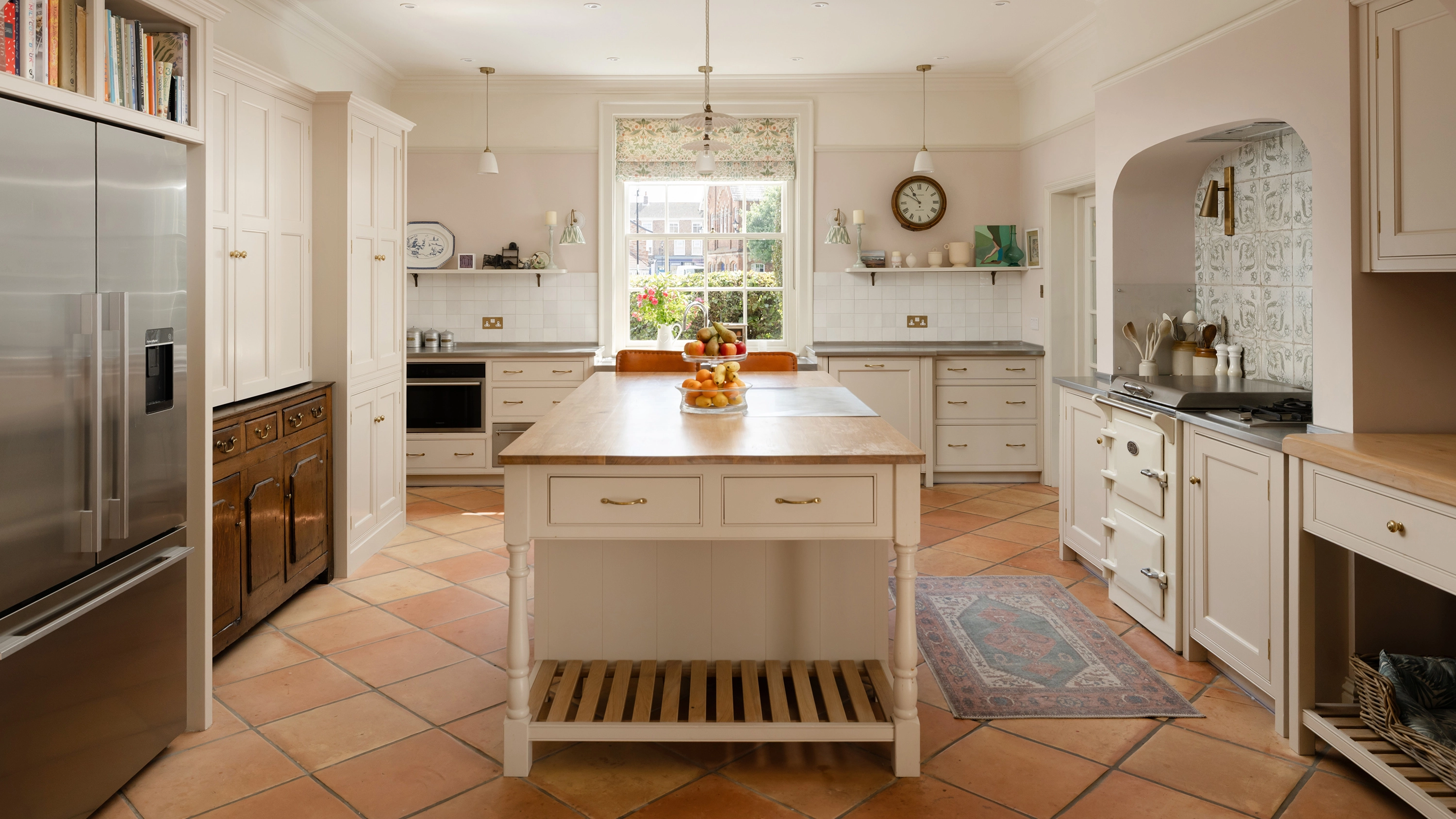 A key transformation involved reconfiguring the former sitting room, dining room and utility into a large, open-plan kitchen/dining room. The garden room has been re-roofed to create a usable year-round space and the elegant 22ft drawing room, with its open fire and French doors leading to the garden, has been sympathetically restored.