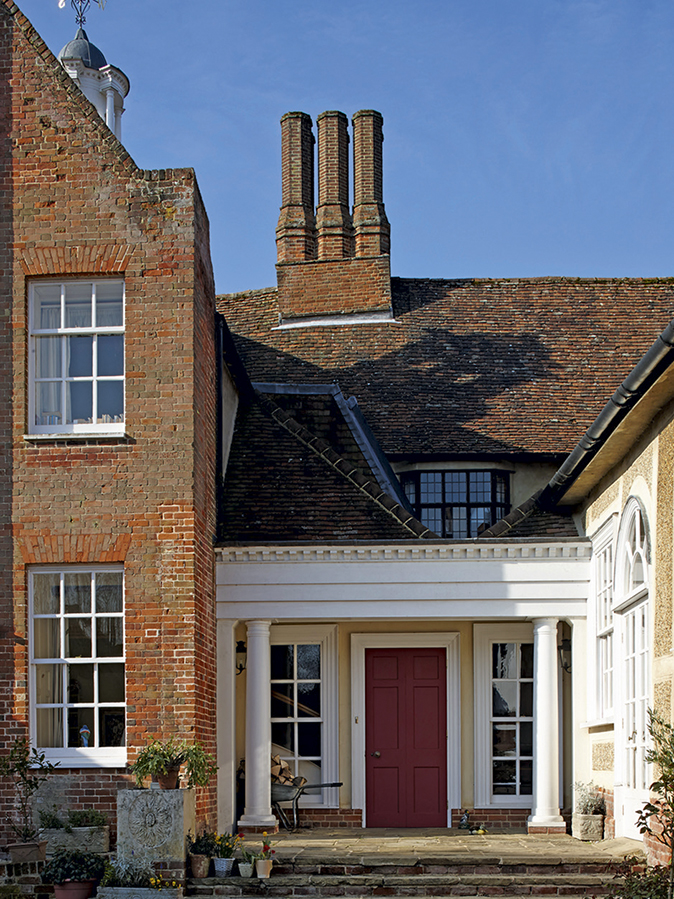 A new porch entrance with Tuscan columns by Kay Pilsbury of Kay Pilsbury Thomas Architects of Saffron Walden has turned the back door of this large Essex house into a proper entrance. It provides direct access to the kitchen and private living rooms of the family