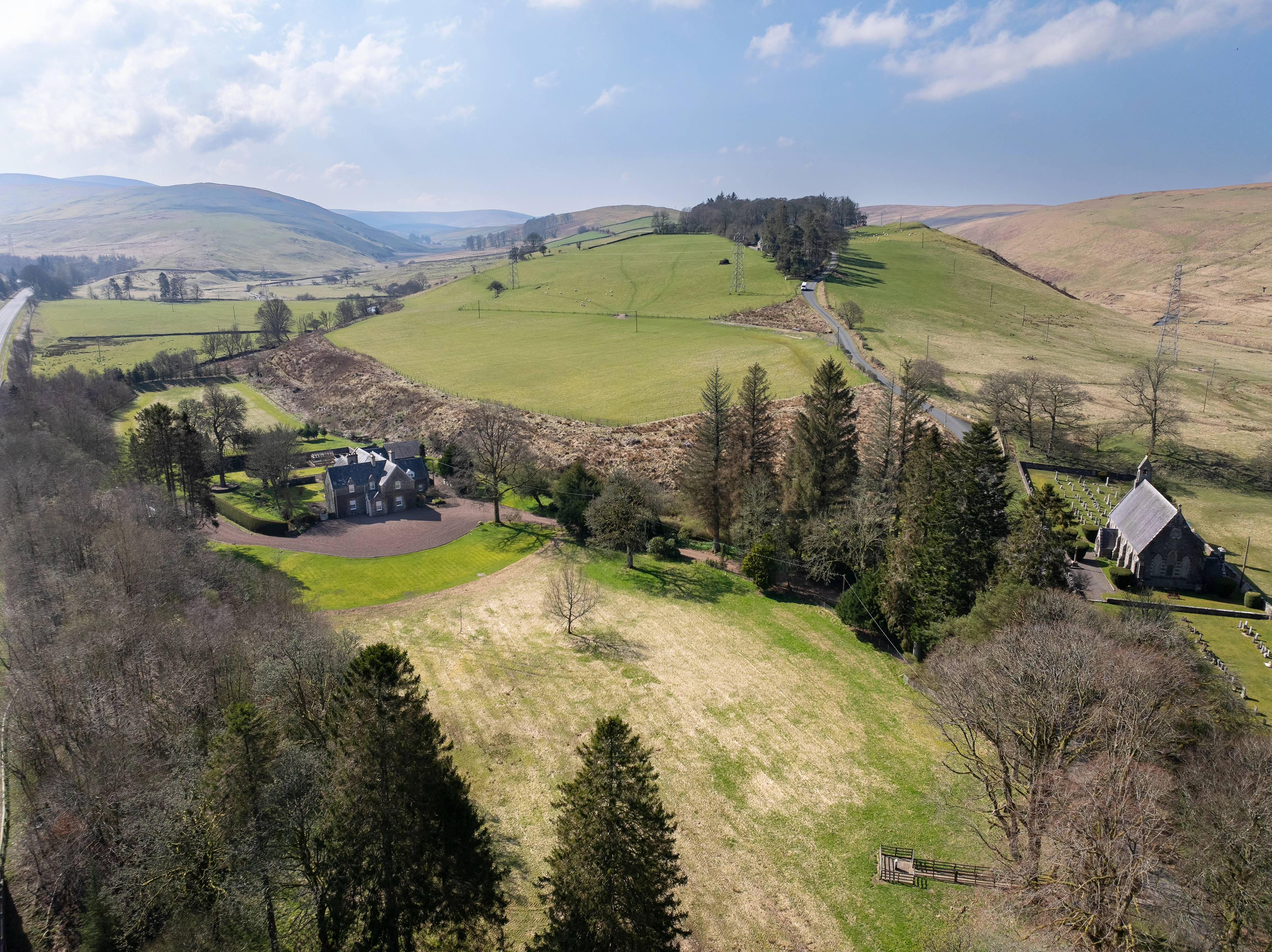The property stands about 10 miles from Hawick and north of Teviot-head. A few yards from the house lies the grave of John Armstrong, otherwise known as Johnnie (Laird) of Gilnockie, an infamous Reiver whose rogueish image was romanticised in the works of Sir Walter Scott.