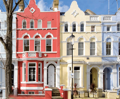 Our London property of the week (the pink one) is a classic Notting Hill townhouse with lovely views over its communal gardens