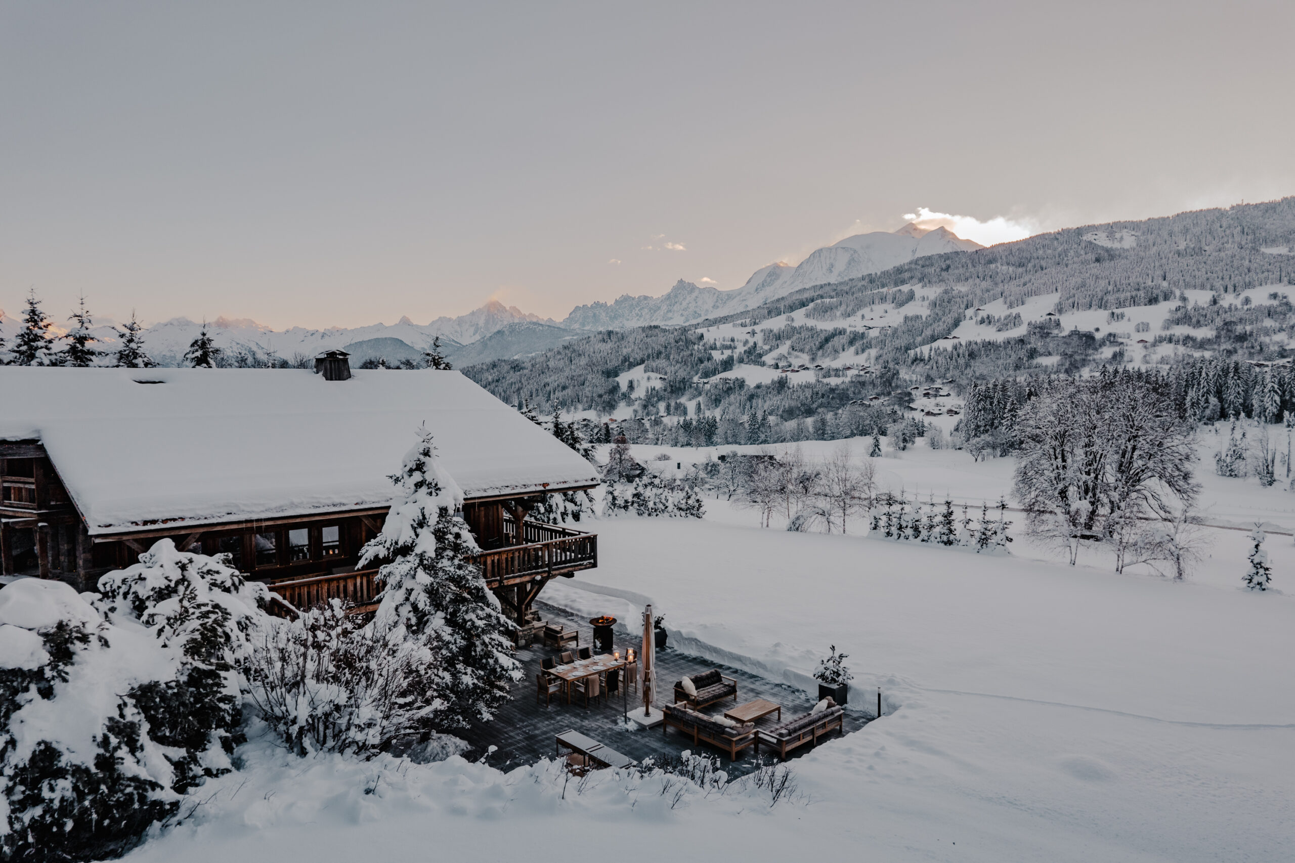 I decline the kind offer of a shuttle and decide to walk back across town as Christmas lights start to twinkle and the setting sun paints the peaks around Mont Blanc in pastel pinks and oranges. My base for the trip, Ultima Megève, is tucked into the tiny hamlet of Demi-Quartier and stands, unassumingly from the outside, as an exemplar of UHNWI-tailored luxury — one of what the group’s stylish operations chief, Sven Flory, who joins us for dinner, calls their ‘superyachts on land’.